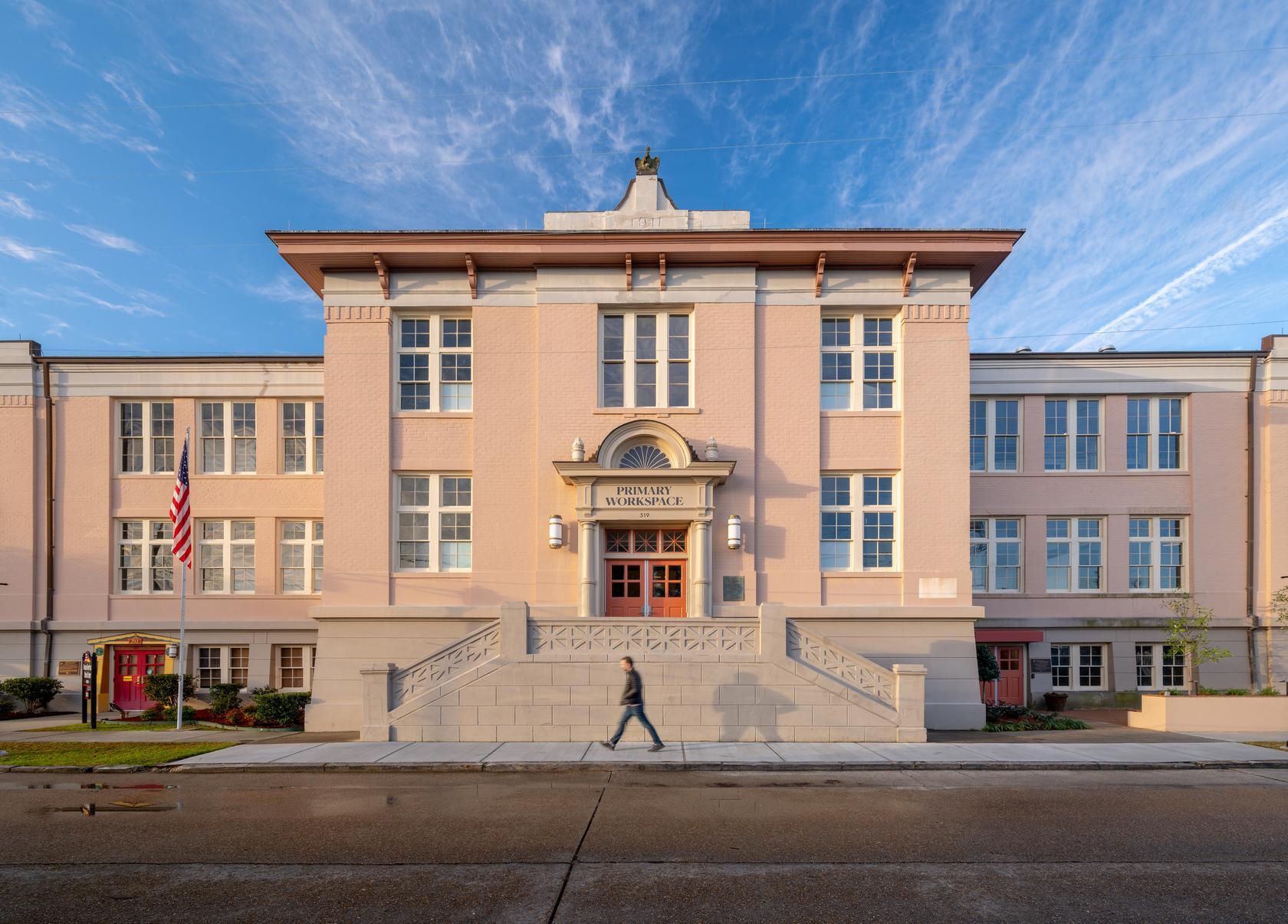 L’espace de travail partagé du Centre d’histoire locale à Gretna, en Louisiane, allie charme historique et fonctionnalité moderne dans un bâtiment de 21 000 pieds carrés. Le premier étage est un espace ouvert pour les locataires, et la rénovation des deuxième et troisième étages préservent l’importance de l’immeuble et tirent parti des crédits d’impôt pour sa revitalisation. Le projet a non seulement rajeuni une propriété historique précieuse, mais a également amélioré sa préservation et son importance continue dans le tissu urbain en évolution de la ville.